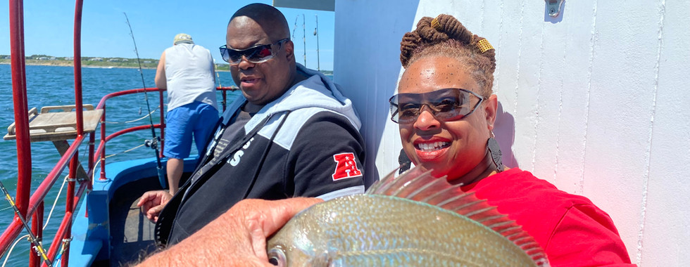 What an amazing experience deep sea fishing with the Skipper today!!! I think I have a new hobby now! We caught 6 fish, all Scup/Porgies...Amari caught 2 and I caught 4. Some of the others on our boat caught some black sea bass as well. I really wanted to catch one of those too, and had one on the line, but it was a little too small, so we had to release it. The first mate Maxwell even cut and filleted them for us so I could cook them at our AirBnB! I highly recommend checking out Pary Boat Skipper if you like to fish or would like to learn to fish.
